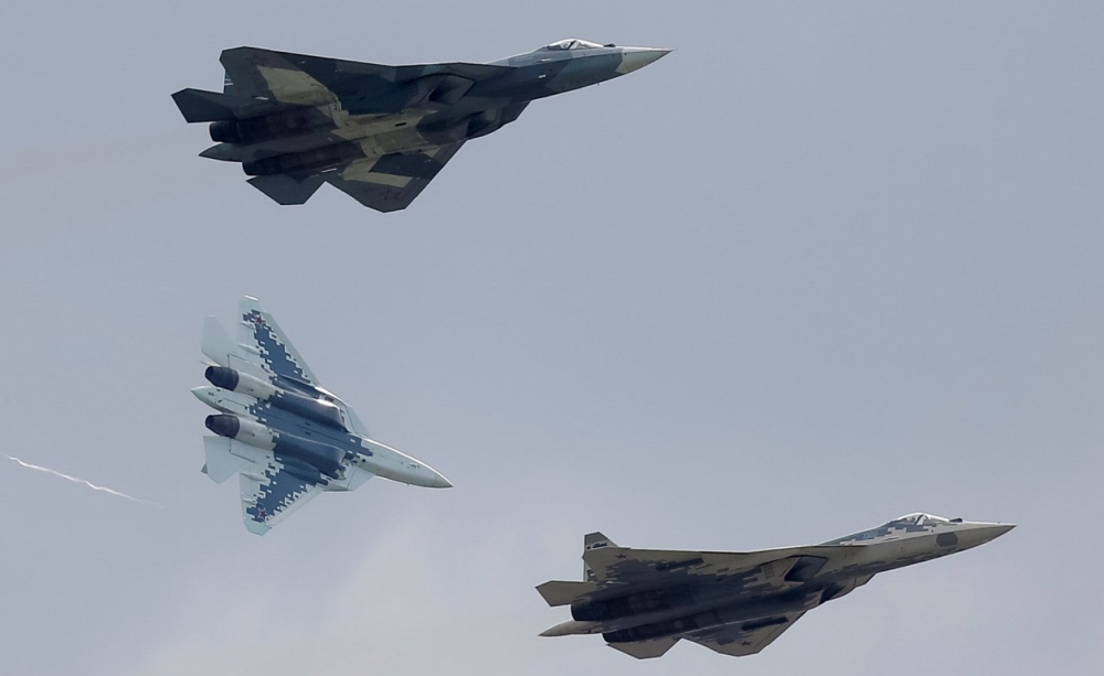 The fifth-generation multi-role fighter was designed by UAC as an aerial platform to destroy all types of air, ground and naval targets. Much like the American-built F-22 Raptor or F-35 Joint Strike Fighter, the Su-57 fighter jet features stealth technology—in this case from the broad use of composite materials, while the aircraft is also capable of supersonic cruising speed and is equipped with an advanced onboard radio-electronic system that includes a powerful onboard computer. That computer has been described as a second pilot, but how it might be used remotely is still unclear. Another innovation is the armament that is placed inside the airframe’s fuselage.