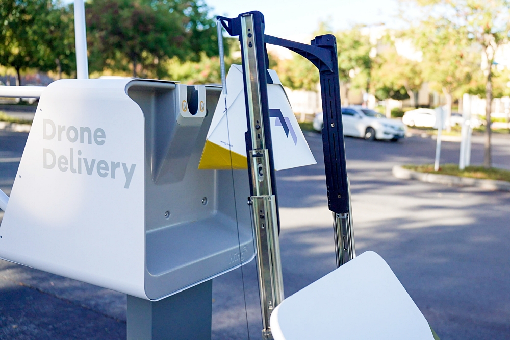 - Convenient: Curbside robotic package pickup allows merchants to access drone delivery without modifying their facilities or installing new equipment.