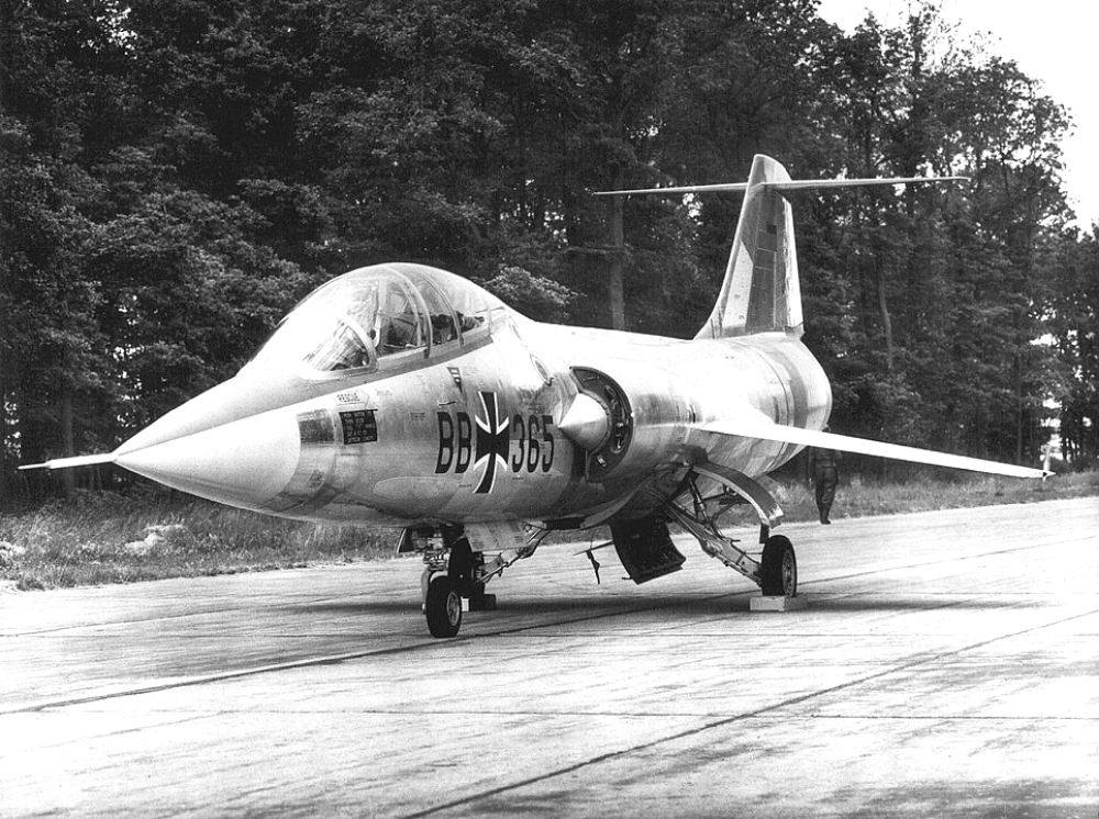 The Lockheed F-104 Starfighter is an American single-engine, supersonic air superiority fighter which was extensively deployed as a fighter-bomber during the Cold War. Created as a day fighter by Lockheed as one of the "Century Series" of fighter aircraft for the United States Air Force (USAF), it was developed into an all-weather multirole aircraft in the early 1960s and produced by several other nations, seeing widespread service outside the United States.