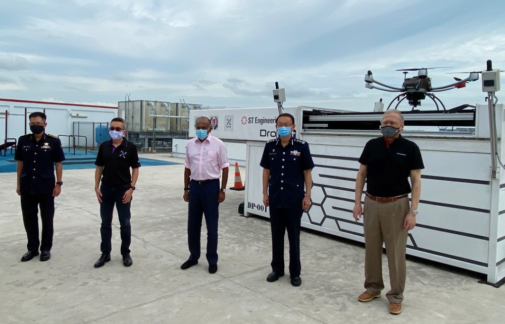 Mr K Shanmugam, Minister for Home Affairs and Minister for Law, viewed a BVLOS UAV flight demonstration at the Tuas View Fire Station. He said: