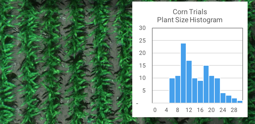 The Aerial Phenotyping service leverages SLANTRANGE’s proven expertise in characterizing agricultural crop development with advanced sensor technology and data analytics. The service provides two major advantages over current data collection methods for test plots. First, a full suite of phenotype metrics are delivered that can be difficult or impossible to accurately measure with ground-based or other aerial measurement techniques, such as manned aircraft or satellites. Example metrics include plant counts, plant size distributions, vegetation fraction, chlorophyll index, vegetation indices such as NDVI, as well as customized metrics for specific crops or research objectives. Second, the service provides an automated and scalable solution to collect this valuable data. SLANTRANGE handles all of the data collection and processing, with complete coverage of every plot in every field, and can scale the service to meet the needs of any research operation across the globe.