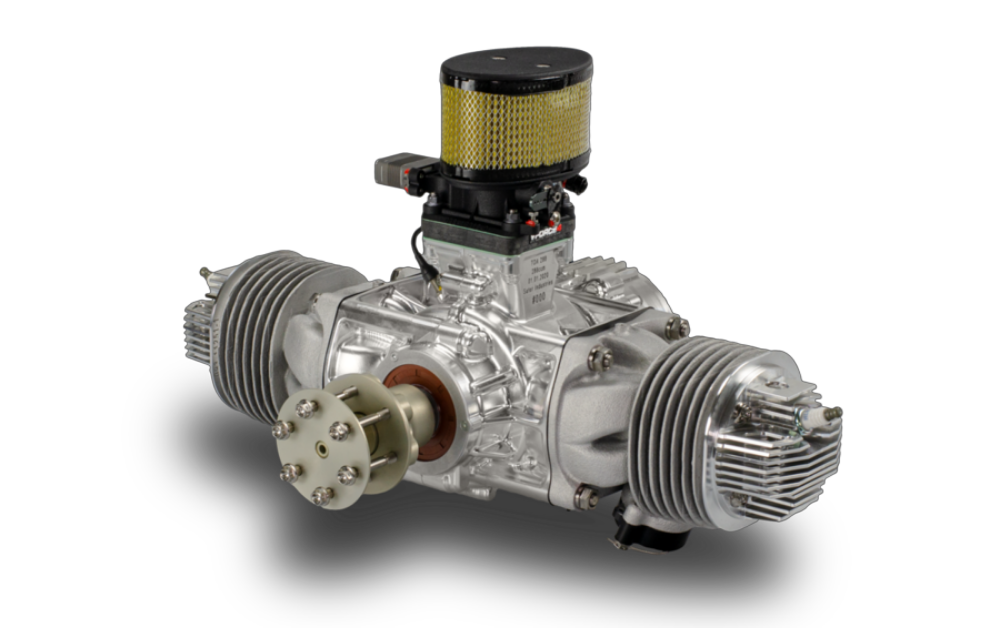 The Suter TOA288 is a twin cylinder, horizontal opposed, air cooled, two cycle engine, utilizing fuel injection, an advanced electronic engine management system and a 1kW starter/generator. Displacement is 288cm3. Power: 17.5kW (24HP) @6500rpm. The engine was a design collaboration between CAE GmbH and Suter Industries combining CAE's 25 years of manned & unmanned 2-stroke engine experience with Suter's over 25 years of 2-stroke motorcycle racing design & manufacturing experience.