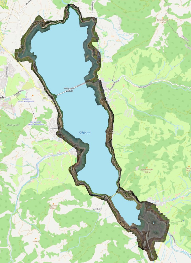 The Sihlsee is a man-made lake in Canton Schwyz used for energy generation. SBB oversees this infrastructure, including turbines sitting on the lake bed, which generate electricity when snowmelt and rain water flow into it. They started flying WingtraOne over the lake to map the shore and various water levels, because they can not afford it if the lake stays low for too long.