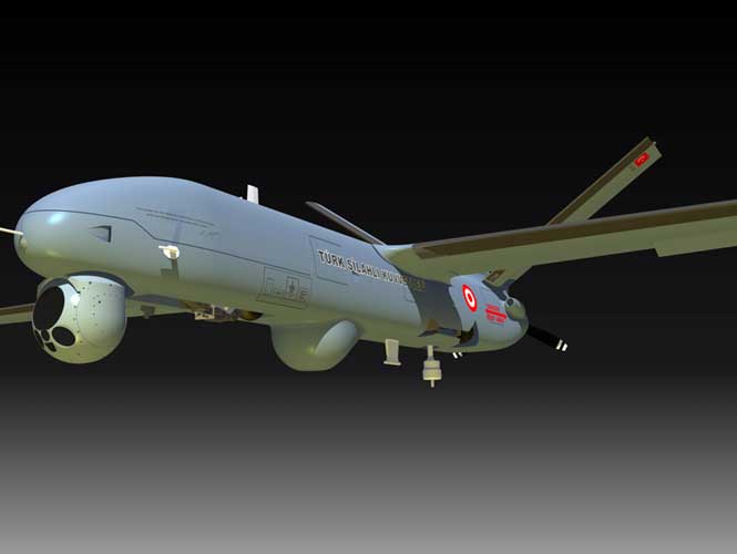 The Anka can fly at an altitude of 30,000 feet for 24 hours, and has a cruising speed of 75 knots. It has a wingspan of 17.3 meters and is powered by a powered by a pusher type piston-prop diesel engine of 155 HP. The fully composite airframe is composed of an 8 meter long monocoque fuselage, detachable wing and V-Tail, retractable landing gear, equipment bays, service doors and other structural components.