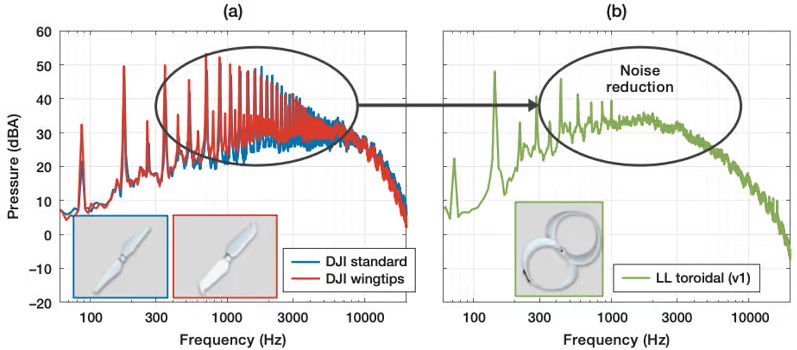 This has been proven by tests of prototype toroidal propellers on commercial quadcopters that indicated thrust levels comparable to those of conventional propellers at similar power levels. The resulting reduced sound levels allowed toroidal-propeller-equipped drones to function without affecting human hearing at distances half of those encountered in typical operations.