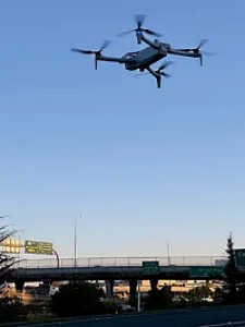 When flying, a Skydio X10 weighs about 5 1/2 pounds, is 31.1 inches long, 25.6 inches wide and 5.7 inches high.
