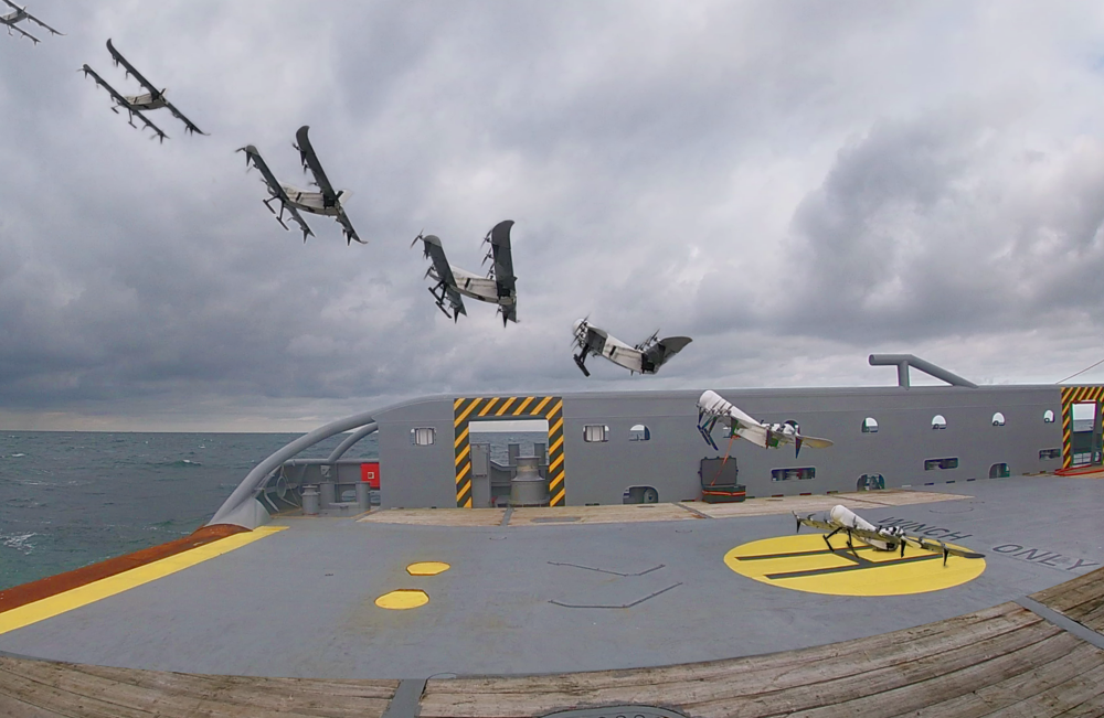 The fully electric drone weighs 13kg and has a wingspan of three metres. It is also very safe: it is powered by 12 motors so even if several motors fail, it can still land safely on the afterdeck of a ship, for example.