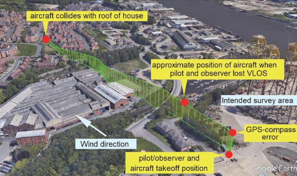 A British survey drone crashed into a house and fell outside due to GPS interference, according to a report by the U.K.’s Air Accident Board. The 25-pound drone fell from sufficient height to cause serious injury or death, but fortunately no one was present at the time.