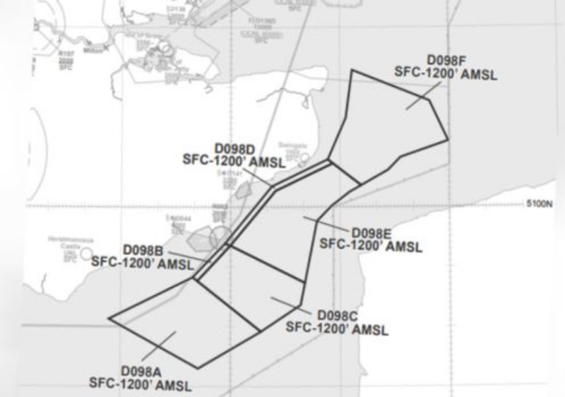 The CAA imposed airspace restrictions on 2 December and last until 31 March 2020. The CAA said aircraft can only enter the "temporary danger areas", which can be put in place with less than 24 hours' notice, after being cleared by air traffic control.They are limited to 1,200ft above sea level and will not affect commercial passenger planes.