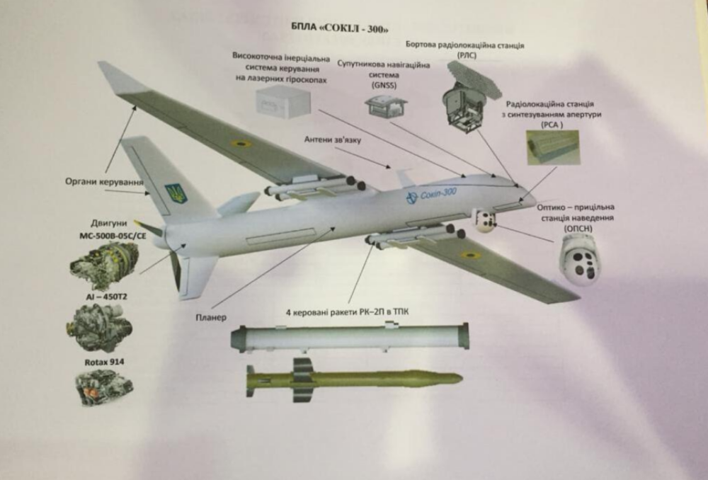 The “basic version” includes the MC-500B engine manufactured by Zaporizhia-based Motor Sich and will allow the Sokil-300 three hours of operation with a cruising speed of 335 kilometers (208 miles) per hour and a maximum range of 1,000 kilometers (621 miles).