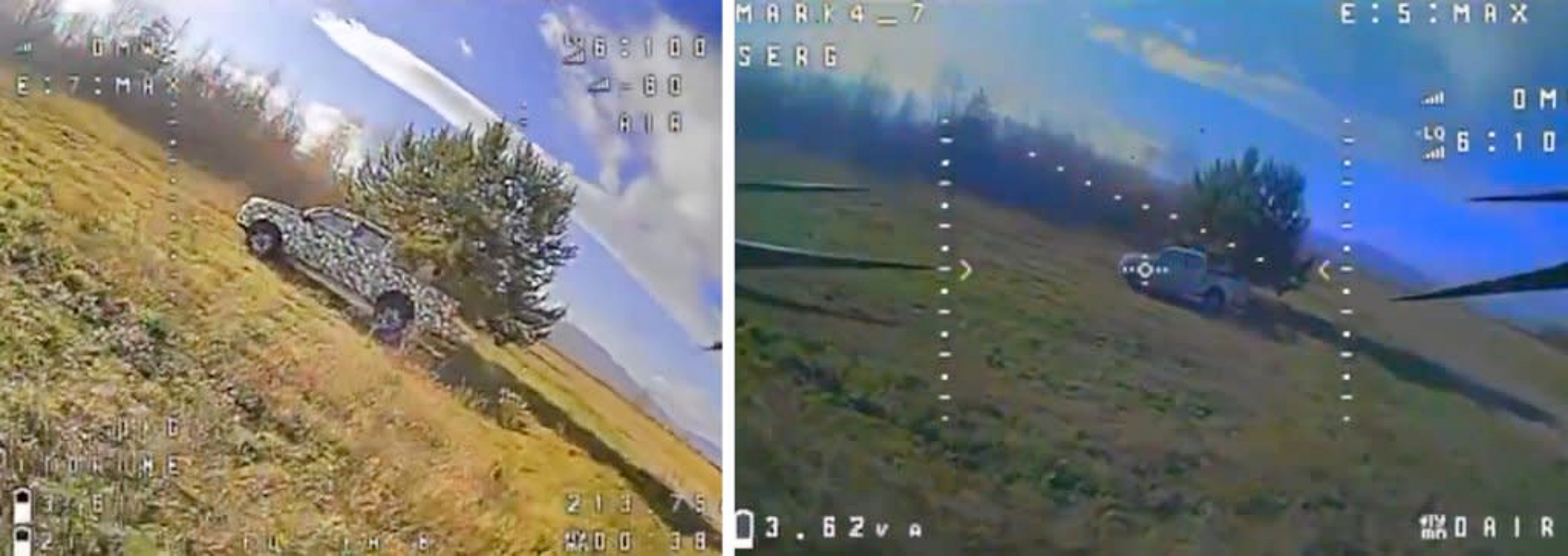 According to Beskrestnov, the T10 mothership can carry up to six FPVs at a time. The footage he shared online shows picture-in-picture views as the kamikaze drones are released while their launch platform continues on separately. A single pickup truck looks to be the test target for both kamikaze drones.