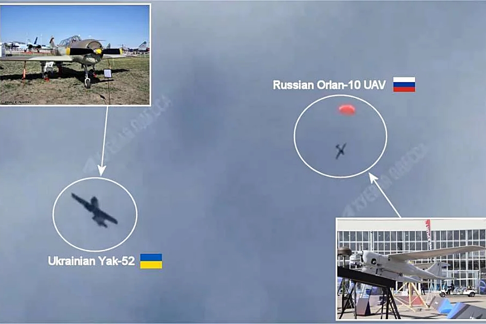 The first documented use of a Yak-52 in this capacity was reported in April 2024 as revealed by an Army Recognition article dated April 29, 2024, when an aircraft with distinctive blue and yellow stripes on its wings was filmed maneuvering around an Orlan drone, just before the latter deployed its orange landing parachute. A more recent video also captured a Yak-52 in the same camouflage scheme engaging a drone, providing visual evidence of these aircraft in action.