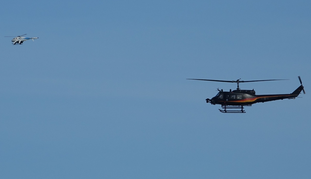UMS SKELDAR has joined forces with partner ESG to complete a range of successful exercises with the German Armed Forces demonstrating for the first time the capability of Manned – Unmanned Teaming (MUM-T) between the Unmanned Mission Avionics Test Helicopter (UMAT), based on the SKELDAR R-350, and the Bundeswehr (German Armed Forces) Bell UH-1D Huey manned helicopter.