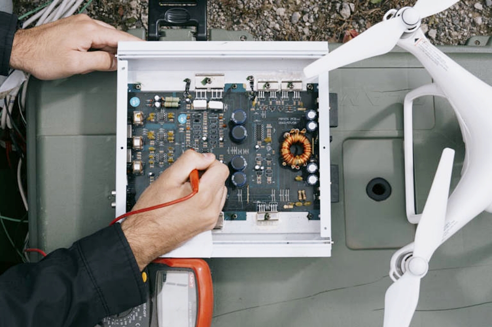 The pair enlisted Asad Ishaq, a robotics student, who unscrewed two “tweeter” speakers from his car. Tweeters produce higher-pitch sounds, which the team blasted at drone components in Mahendru’s living room. An electrical engineer, Michael Acquaviva, joined to build the device’s circuitry.
