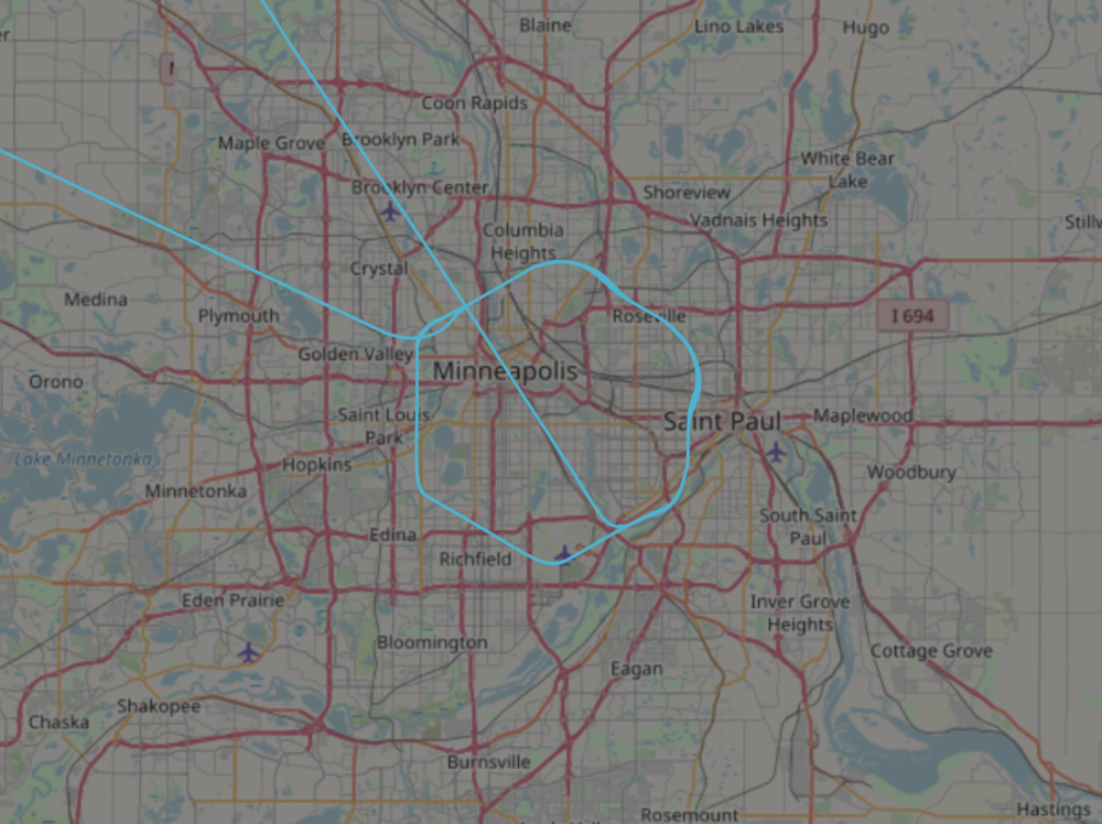 Motherboard verified the flight path of CPB104 with flight data from ADS-B Exchange, a repository of unfiltered flight data. The drone took off from the Air Force Base before making several hexagonal-shaped flyovers around Minneapolis, according to the data.