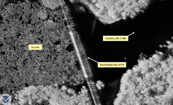 CBP unmanned aerial systems began providing imagery around the Red River Valley area to the National Weather Service beginning March 25. The aircraft, flown from the National Air Security Operations Center-Grand Forks, have flown over 40 flight hours using their UAS to provide critical information to the NWS flood forecast and emergency management crews. These flights are flown in conjunction with normal operations, and do not take away from critical security missions.
