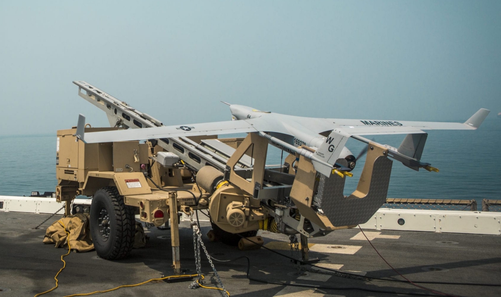 Photo: An RQ-21A Blackjack UAS attached to Marine Medium Tiltrotor Squadron 163 sits on a launcher aboard the amphibious transport dock ship USS John P. Murtha. U.S. Marine Corps/Cpl. Adam Dublinske