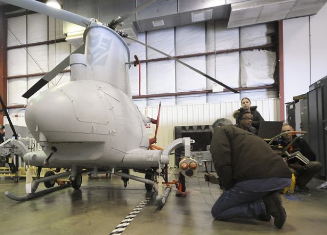 The Fire Scout team and NAVAIR’s structures rotary-wing division personnel conducted the first of a series of tests March 7 on the newly installed hardware, which will gauge how the system will operate in the shipboard environment.