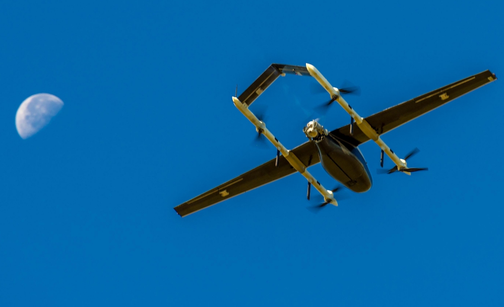 Operators then flew BWUAS to demonstrate a vertical takeoff, transition to forward flight and then back to VTOL for an air drop. The system then transitioned back to forward flight and returned with a vertical landing.