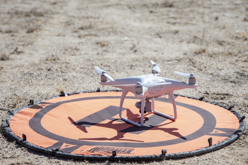 Photo: An unmanned aerial system is staged on a mobile landing zone as U.S. Marines with 3rd Low Altitude Air Defense Battalion, 3rd Marine Aircraft Wing, prepare to engage the UAS with a Compact Laser Weapon System during Counter-UAS training with Marine Operational Test and Evaluation Squadron (VMX) 1 in Yuma, Ariz., on July 30, 2020. USMC photo by Lance Cpl. Larisa Chavez.