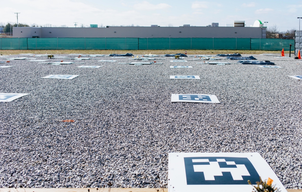 Located adjacent to a commercial district full of strip malls, restaurant chains, and big box stores, Wing’s five-acre base of operations in Christiansburg is known as the Nest. There are eight trailers on the grounds. The three closest to the entrance gate are dedicated to meeting rooms and office space. The other five — cordoned off with cones and safety tape — house the drone pilots, the drones themselves, and products for delivery. There is a 50-foot-by-50-foot drone tarmac checked with 16 square tiles that the drones’ sensors use for landing.