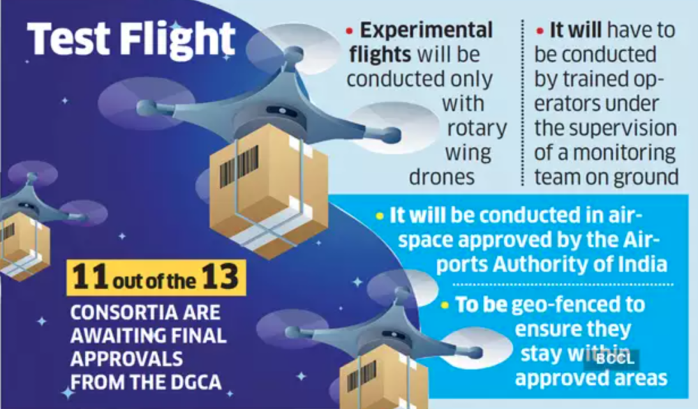 The DGCA is running an experiment to examine the viability of commercial BVLOS operations, which current regulations do not permit. It has created a regulatory sandbox for this, and has permitted at least 10 consortia — including Reliance-backed Asteria Aerospace, Nandan Nilekani-backed ShopX, Spicejet, and ClearSky — to start the project. Each consortium is basically a group of companies within the drone ecosystem.