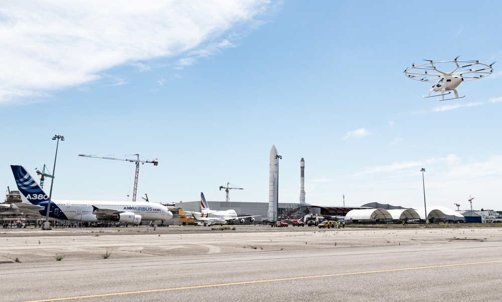 Volocopter, flew its Volocopter 2X electric vertical take-off and landing (eVTOL) aircraft at Le Bourget Airfield during the Paris Air Forum.