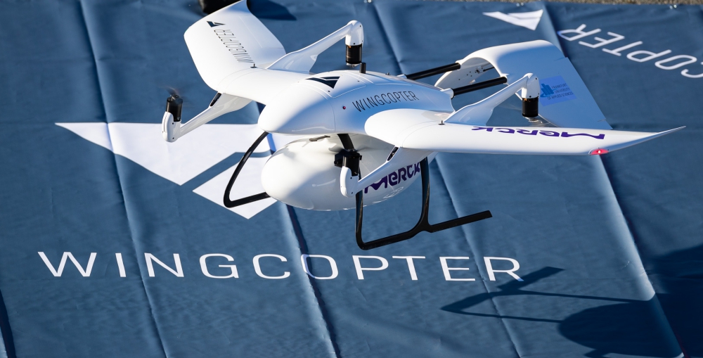 - In cooperation with Merck and the Frankfurt University of Applied Sciences, Wingcopter performed the world's first beyond-visual-line-of-sight flight (BVLOS) between two production facilities. Laboratory samples were flown over a distance of 25 kilometers from the Merck plant in Gernsheim to the company's headquarters in Darmstadt - over highways and state roads, power and rail lines, and industrial infrastructure.