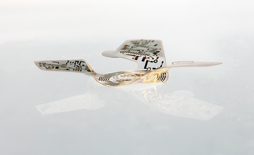 But what about all the electronic litter? Rogers has a plan for that. His lab already develops transient electronics that can harmlessly dissolve in water after they are no longer needed — as demonstrated in recent work on bioresorbable pacemakers. Now his team is using the same materials and techniques to build microfliers that naturally degrade and disappear in ground water over time.
