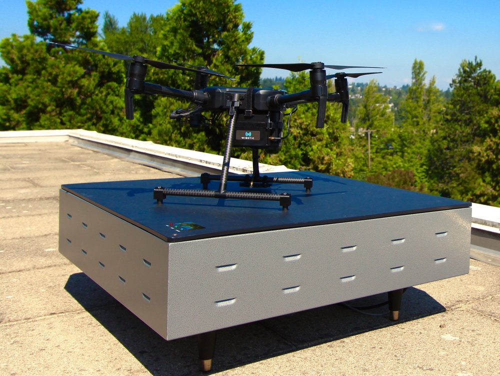 Wibotic system architectureThe wireless charging station for drones is a square platform (3 feet by 3 feet for the standard pad) consisting of an “intelligent” induction plate that, during the landing of the drone, determines the type of batteries supplied to the aircraft, thus establishing the correct charging parameters.
