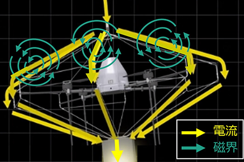 We have devised a design method for a lightning-resistant cage that will not malfunction or break even if the drone is hit directly by lightning, and that can be installed on drones in the city. The lightning-resistant cage is a metal shield that prevents the lightning current from flowing through the drone body by diverting the large current that flows when the drone is hit directly by lightning. In addition, by making the lightning current flow radially, the strong magnetic fields generated by the large current cancel each other out, reducing the magnetic field effect on the drone (Figure 5).