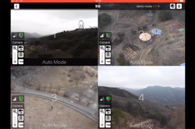 In this demonstration experiment, remote patrol security by four autonomous flying drones was conducted utilizing KDDI's "Smart Drones Platform." With remote patrol security flying multiple drones, it leads to security enhancement such as the discovery of suspicious individuals and fire, alerting attention, night security and so on.
